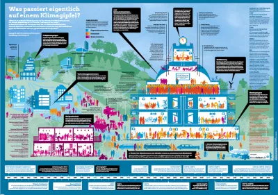Die alljährlichen Klimakonferenzen der UN sind längst Mega-Events, die kaum noch jemand überblicken kann. klimafakten.de erklärt in einer anschaulichen Infografik - in deutscher und englischer Version - Abläufe, Inhalte und Akteure