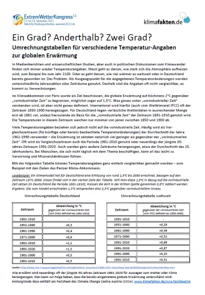 Ein Grad? Anderthalb? Zwei Grad? – Umrechnungs-Tabellen für Temperaturangaben zur Erderhitzung
