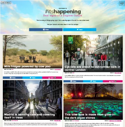Nicht immer nur Katastrophenszenarien zu präsentieren, ist ein Ratschlag der Forschung zur Klimakommunikation. Die britische Website „It's happening“ setzt dies um und sammelt Mutmachgeschichen für den Kampf gegen den Klimawandel.