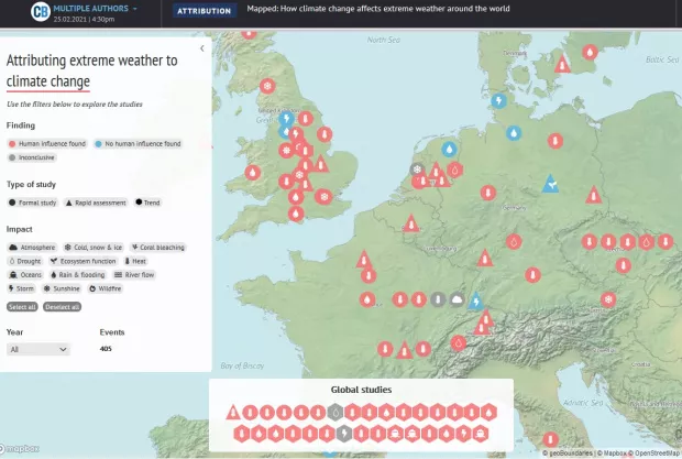 Mehr als 300 solcher Attributionsstudien hat das Online-Portal CarbonBrief.org in einer interaktiven Weltkarte zusammengetragen: