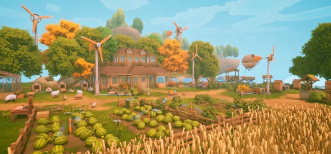 Eine kleine grüne Insel im warmen Sonnenschein: sanfte Wiesen, gackernde Hühner und Sonnenblumen. Mithilfe einer Axt wird ein Baum, der gerade noch im Wind wog, zu Baumaterial für eine gemütliche Hütte. Und dann gibt es noch fliegende Roboter, die Gemüseplantagen bewässern. Außerdem Solarpaneele und kleine Windräder, die Energie erzeugen. Es ist eine Welt, in der Selbstversorgertum und Science-Fiction auf Klima- und Energiefragen treffen. Und wem es auf seiner Insel zu langweilig wird, der kann in sein Luftschiff steigen und neue Orte erkunden.